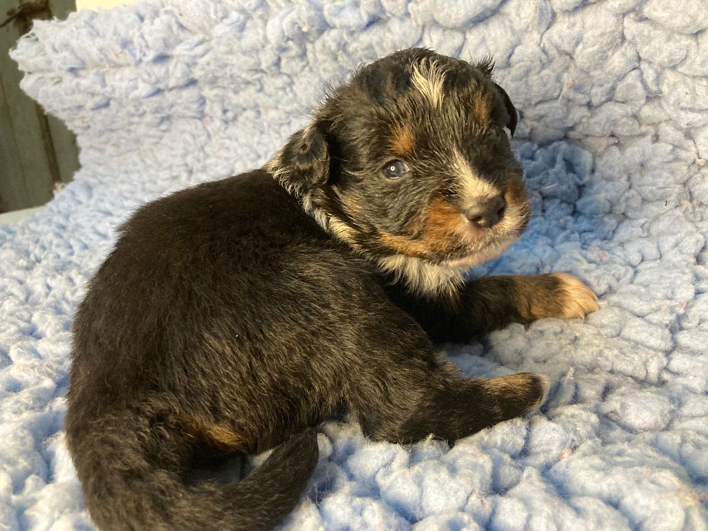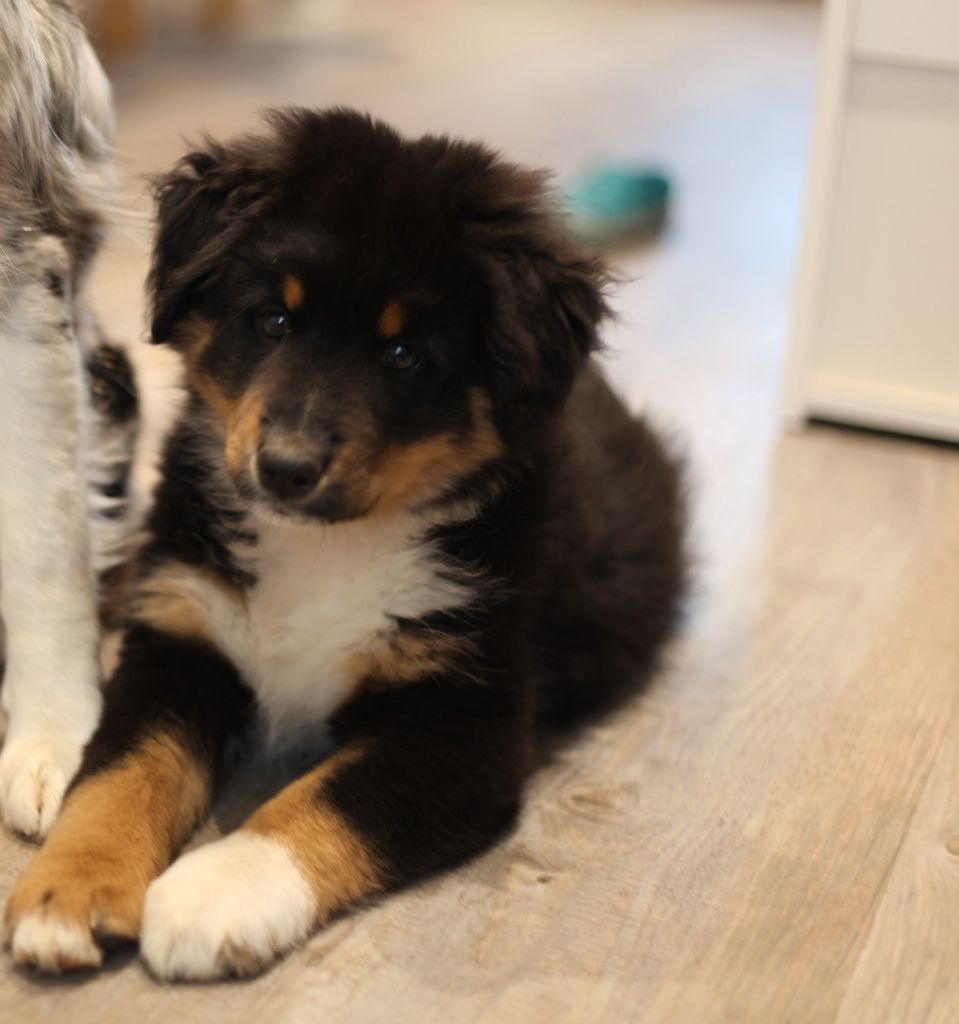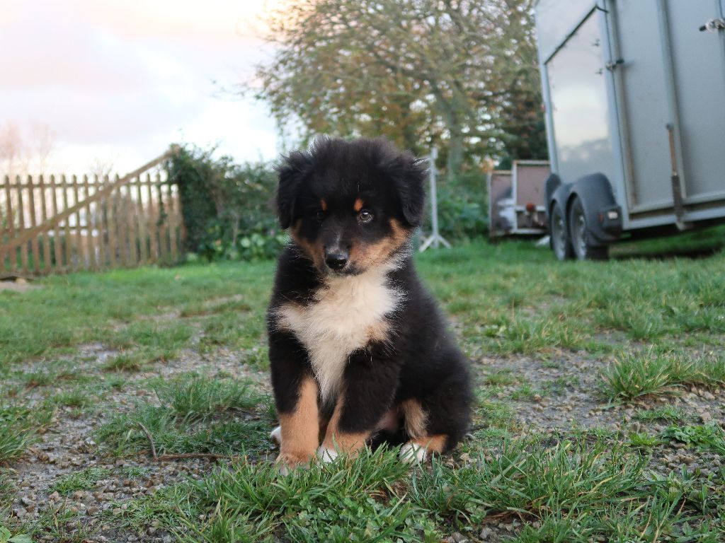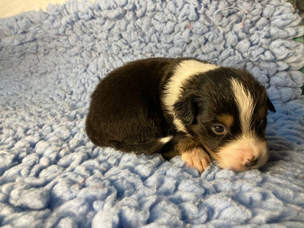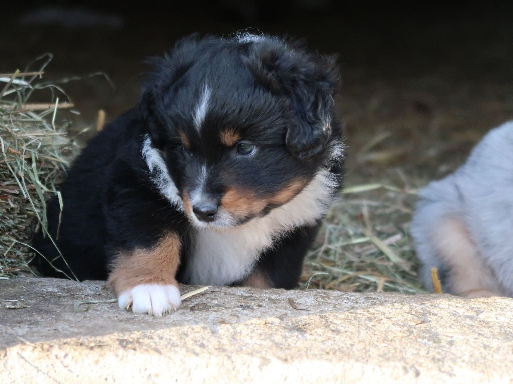 Chiot berger Américain Miniature LOF de couleur noir tricolore .