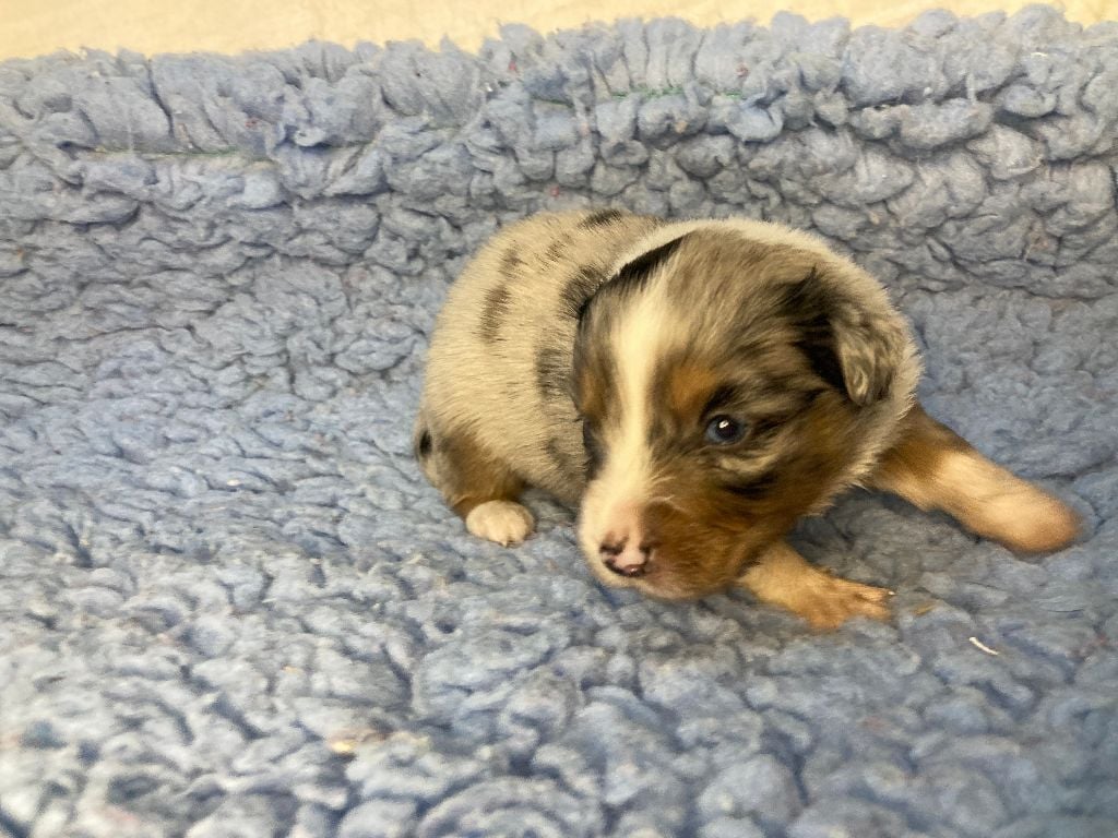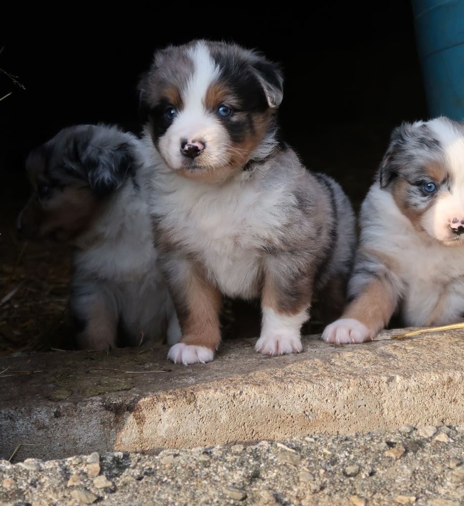 Disponible plusieurs chiots berger Américain Miniature de couleur noir tricolore ou bleu merle.